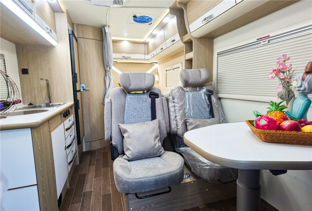 | 正副駕駛椅包 (中間菱形格) | 豪華衛(wèi)浴間 (ABS吸塑工藝) | 升降桌板(進(jìn)口單腿) | ||||||