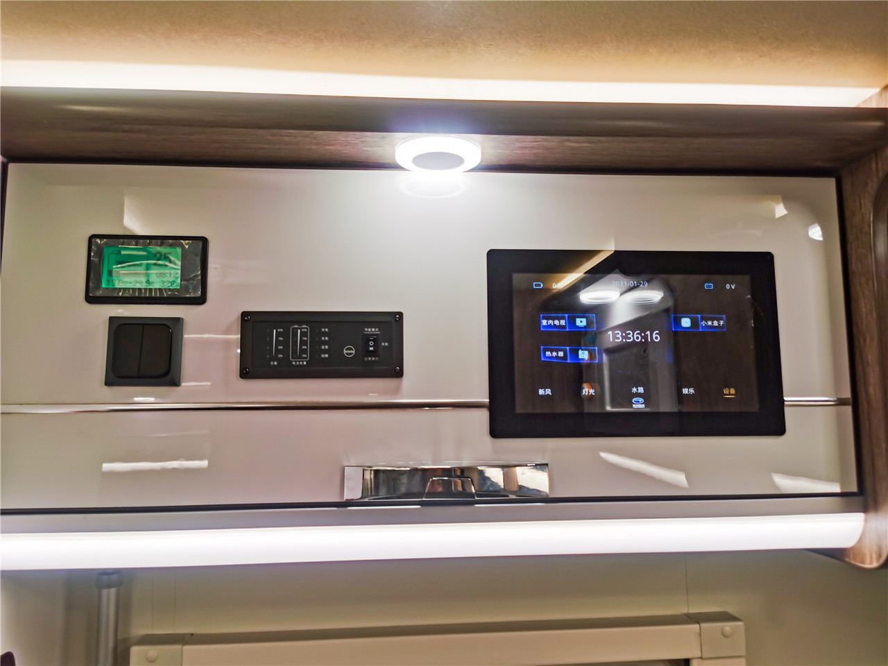 | 12V800AH鋰電池系統(tǒng) | 智能水電中央控制系統(tǒng) | 室內5V房車專用插座(3個) | ||||